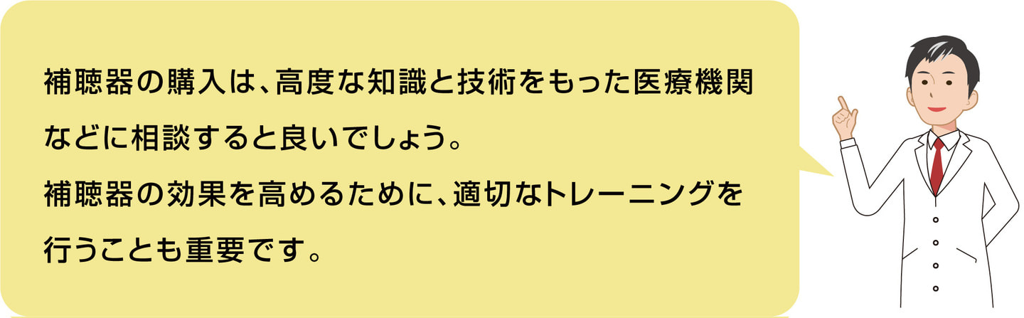 補聴器は、必ず、医療機関などの専門知識と技術のあるところから買うようにしましょう。