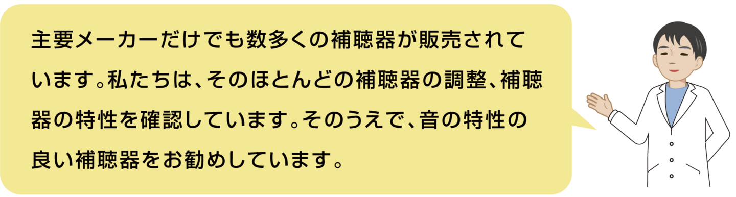音の特性が良い補聴器を選ぶには、様々なメーカーや機種を取り扱った経験と、高い専門知識のある医療機関などに相談すると良いでしょう。