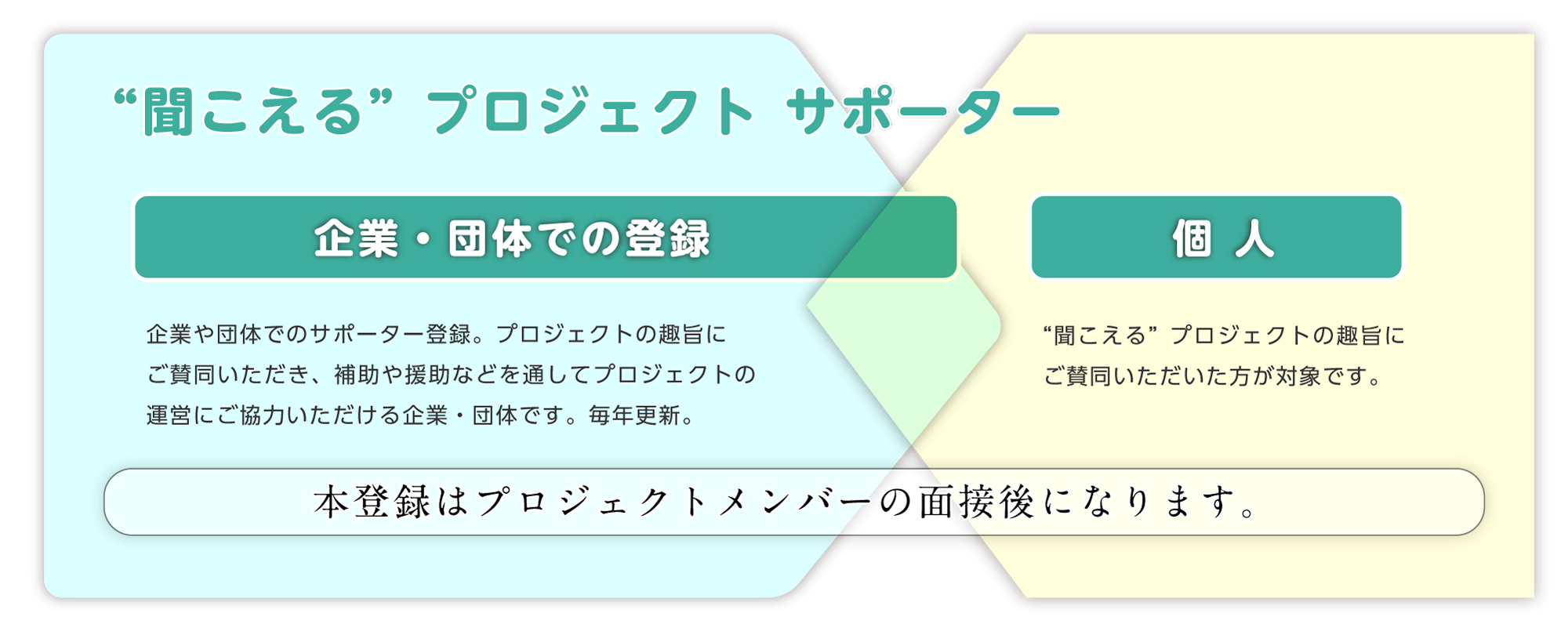 “聞こえる”プロジェクトを支援いただく企業や団体、個人の方を募集しています。下記をご確認ください。